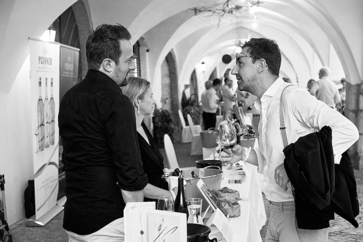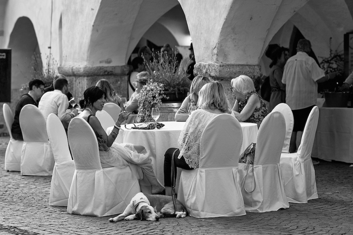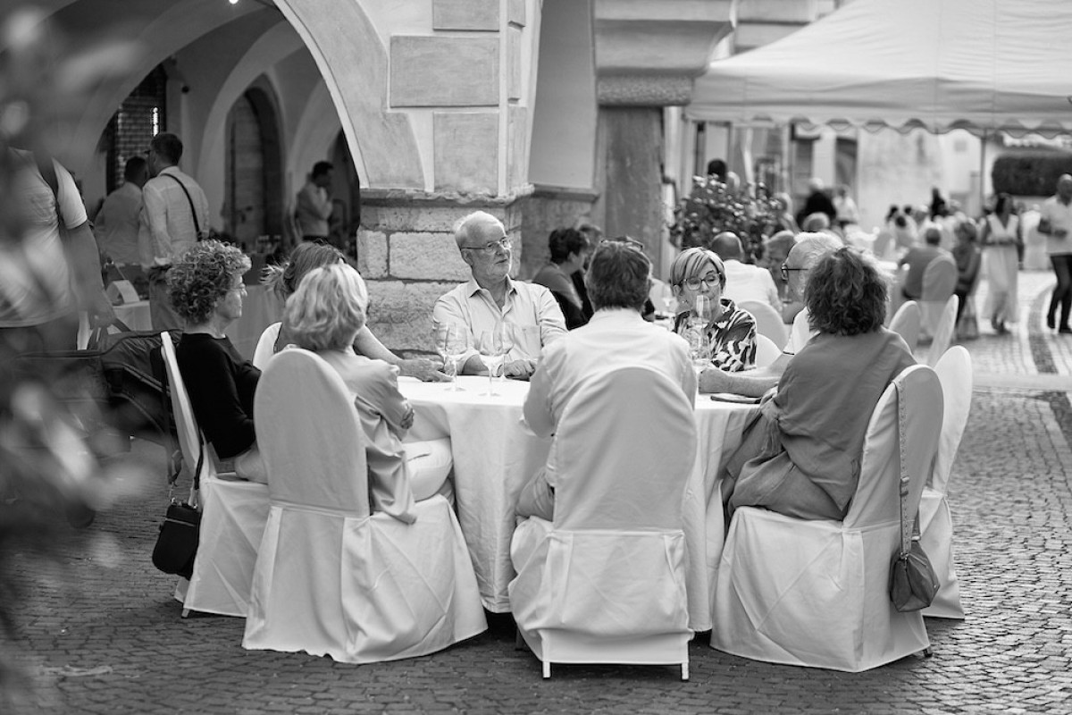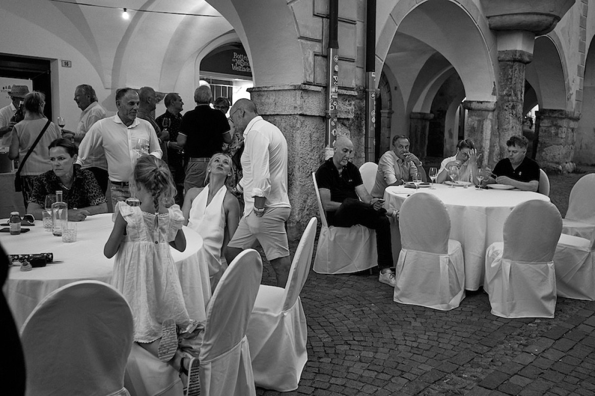 Bei unserem jährlichen Wein & Lauben Event verwandelt sich am Abend die Straße in Neumarkt in einen festlichen Ort, wenn Besucher zu einem gemeinsamen Dinner unter freiem Himmel zusammenkommen.
