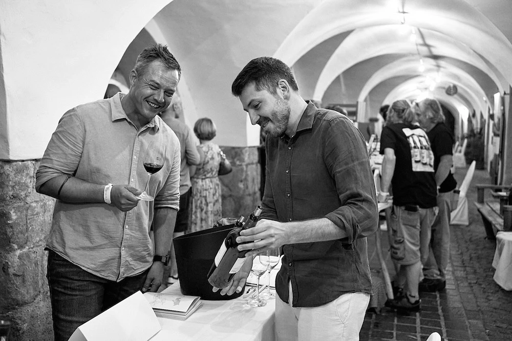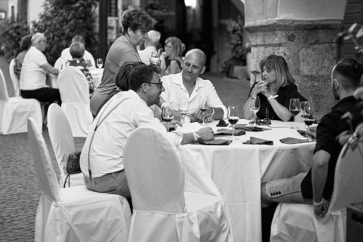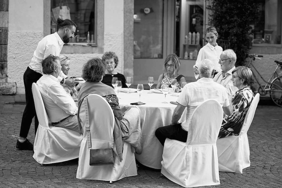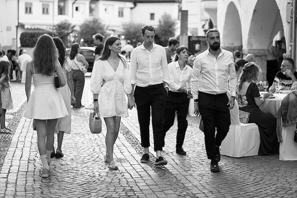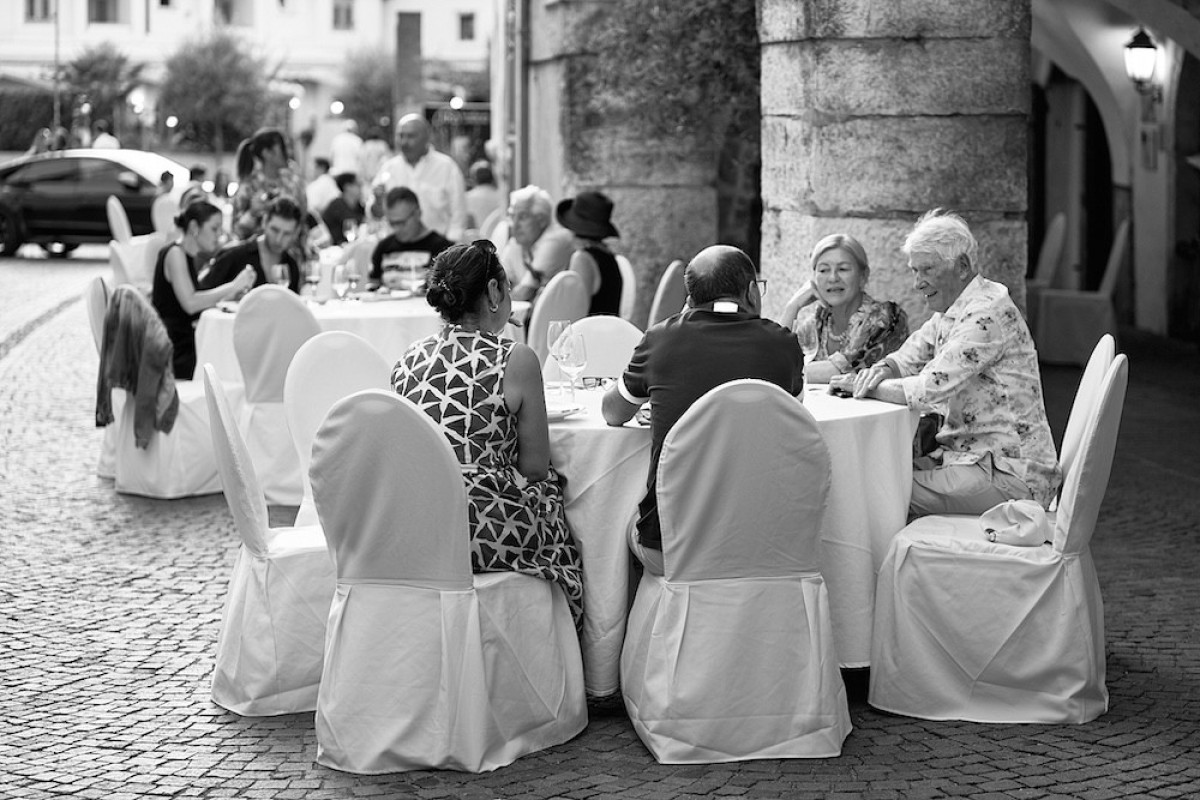 Bei unserem jährlichen Wein & Lauben Event verwandelt sich am Abend die Straße in Neumarkt in einen festlichen Ort, wenn Besucher zu einem gemeinsamen Dinner unter freiem Himmel zusammenkommen.